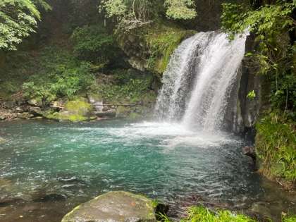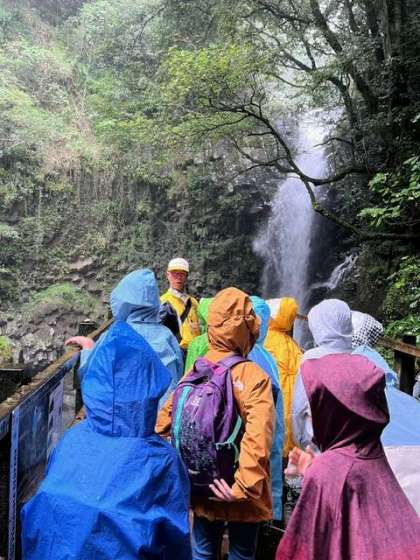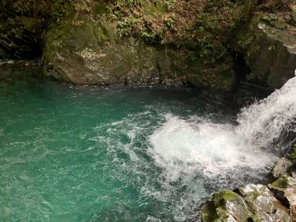 七滝は透明度が高いことが有名で、澄んだブルーの水が美しかったです。班ごとに記念撮影もしました。