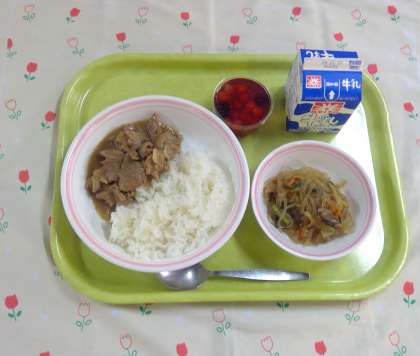 ご飯 プルコギ チャプチェ ミックスベリーゼリー 牛乳