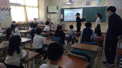 全員が自己紹介をした後、疑問に思ったところを代表児童が質問をして交流を深めました。