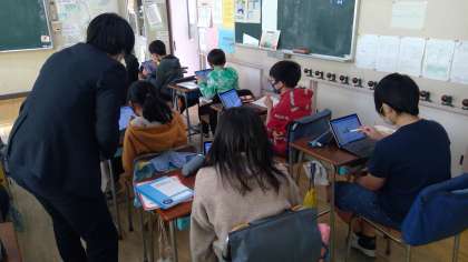5年生は、渋谷タブレットの日in猿楽の授業で、アプリケーションを使い図形をかく学習をしました。自分が組んだプログラムで図形がかけることに驚きながら熱心に取り組んでいました。