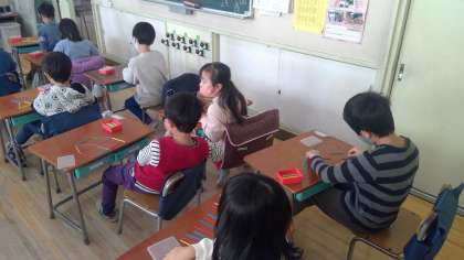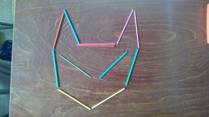 3校時に、1年生は算数で「かたち」の学習をしました。棒を使って家やロケット、動物の顔など様々な形をつくっていました。