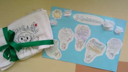 家庭科の学習を生かして作った雑巾と6年生送る会週間のお礼のメッセージです。それぞれ工夫を凝らして作りました。気持ちは伝わったでしょうか。