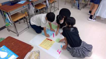 4月から5年生では総合的な学習の時間で、飼育している海の生き物(カクレクマノミ・メジナ・イソギンチャク・サンゴ)について調べてきました。今日は調べたことをまとめる時間でした。たくさんの情報の中から、テーマに沿って見やすくまとめようとしていました。熱中して取り組む姿が印象的でした。
