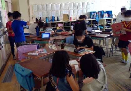 国語の学習「新聞記事を書こう」では、「4月から今日までの猿楽小学校や4年生の活動、生活の様子を保護者に伝えよう」をめあてに取り組んでいます。