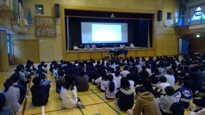 2月6日(木)に音楽朝会が行われました。課外クラブである「ミュージックフレンドお箏クラブ」が、「さくら」と「通りゃんせ」を披露しました。3月19日(水)には、近隣施設の「パール鉢山」でも演奏してきます。
