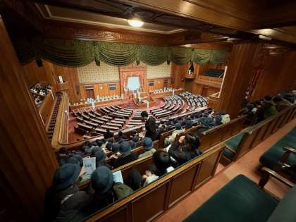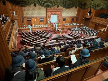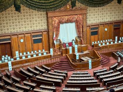 ?本会議場の傍聴席からの見学です。90年経つ荘厳な建前に歴史を感じながらお話しを伺いました。