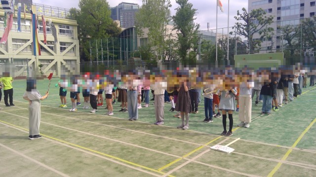 4月22日の全校朝会で6年生として金管デビューをしました。
