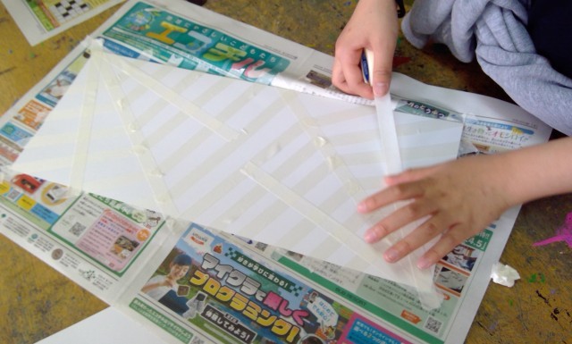 5年生は、マスキングテープの特徴を生かして作品作りをしています。