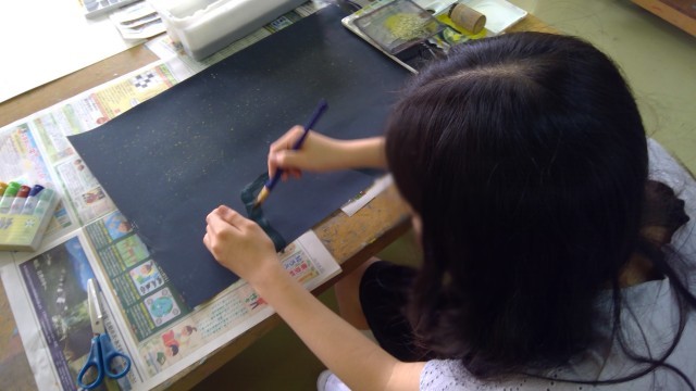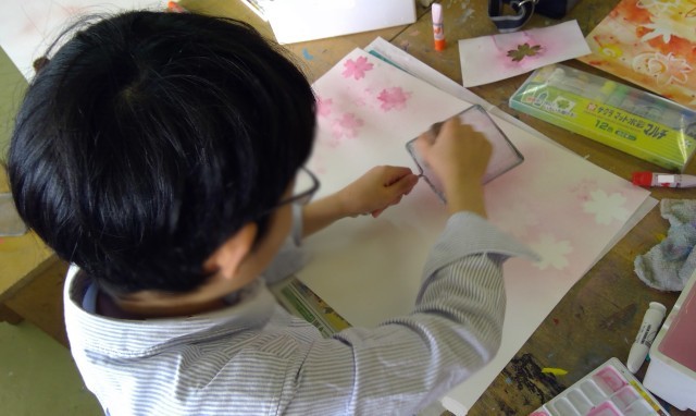 今回はスパッタリング・ローラーの技法を組み合わせて、季節を表現していきます。