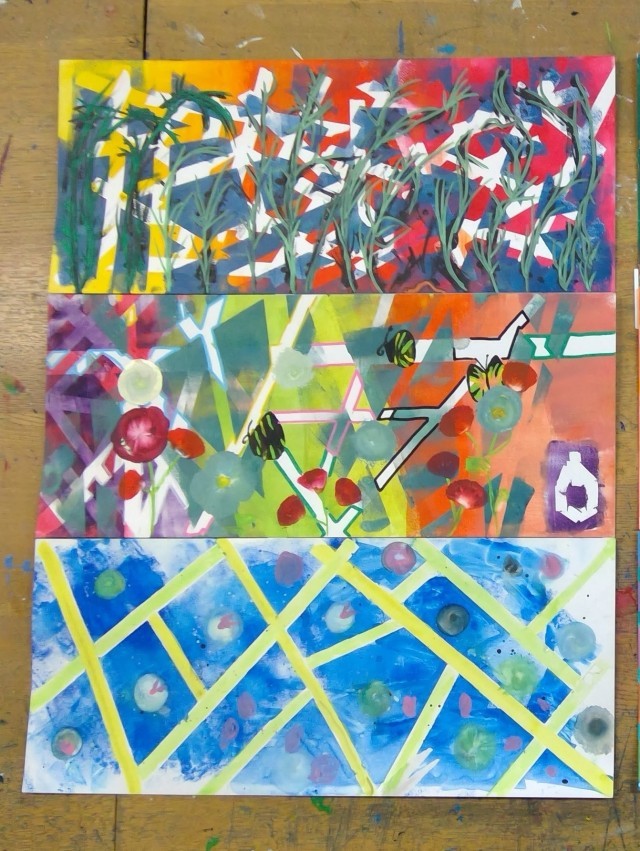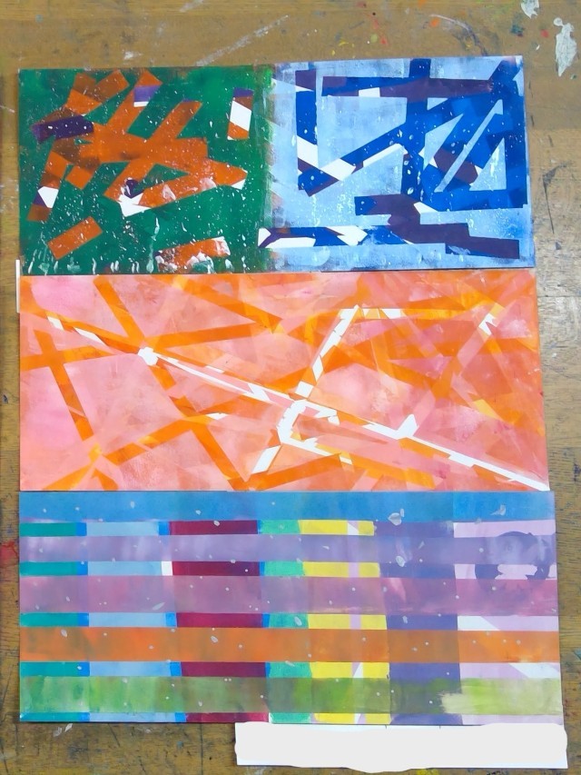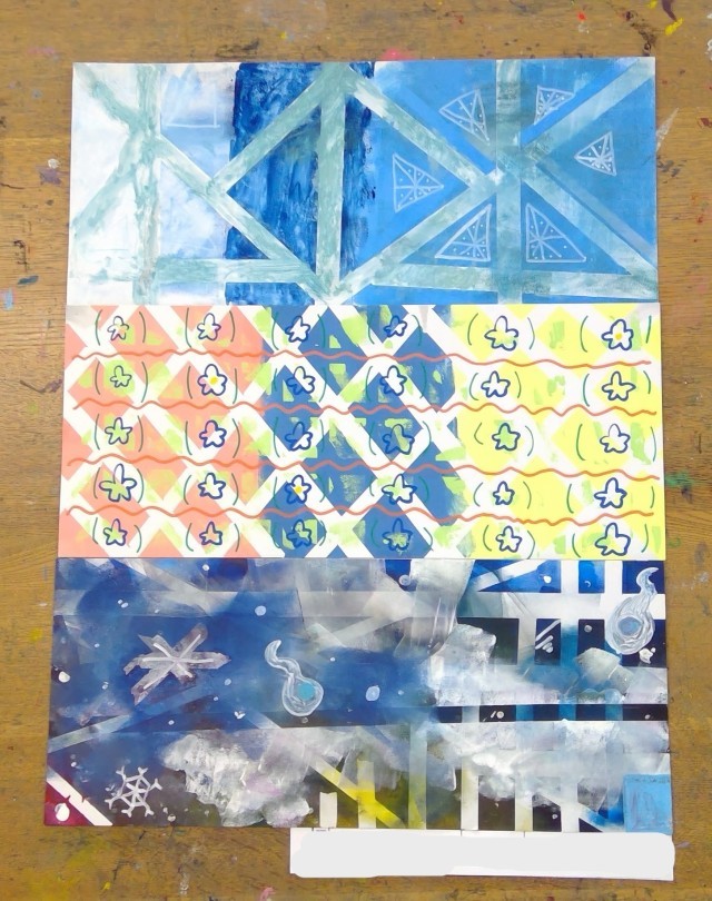 色の重なりやマスキングテープでできる形を考えて作ることができました!