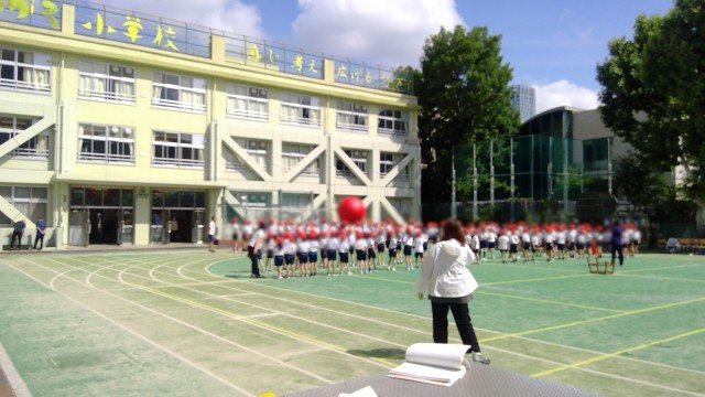 朝の時間と1時間目に、運動会全体練習を行いました。