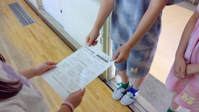 リクエスト給食のアンケート用紙を担任の先生に渡しにいきました。