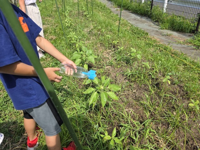 暑い中でしたが、ヒマワリにしっかりと水やりを行いました。