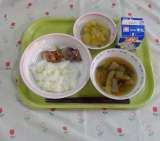 穴子入りご飯 ドレみそレモンサラダ 大平 果物 牛乳