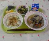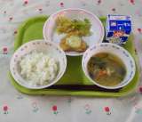 かつお飯 ぐる煮 味噌汁 ゆずゼリー 牛乳