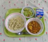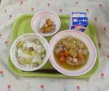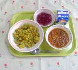 カレーピラフ ミネストローネ グレープゼリー 牛乳