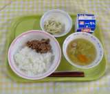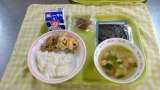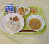 ご飯 豚肉のマーマレード焼き 大根サラダ キャベツスープ 牛乳