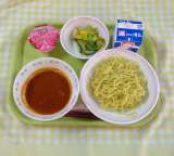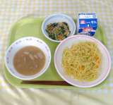 つけナポリタン コールスローサラダ いちごのアイス 牛乳