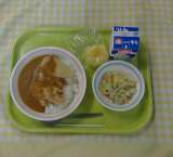 カツカレー ごぼうサラダ 冷凍りんご 牛乳