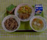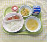 ご飯 鶏肉のトマトチーズ焼き コーンサラダ 野菜スープ 豆乳ムース 牛乳