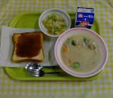 きなこトースト キャベツサラダ コーンクリームスープ 牛乳