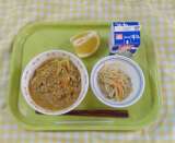 タンタンメン もやしの中華サラダ 果物 牛乳
