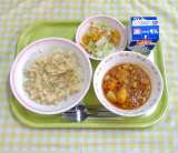 ガーリックライス 大豆ミートのチリコンカン コールスローサラダ 牛乳