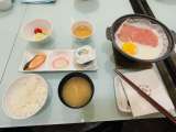 お散歩の後の朝食はコーンスープやクロワッサンなど美味しくいただきました。しっかり...