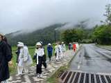 ハイキング、小休止です。みんな元気です。光徳牧場のアイス目指して歩きます。