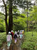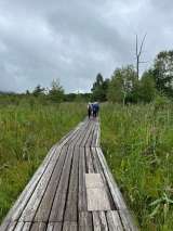 戦場ヶ原の木道を歩き,まばゆい緑を楽しみました。歌をうたいながら闊歩する子もいま...