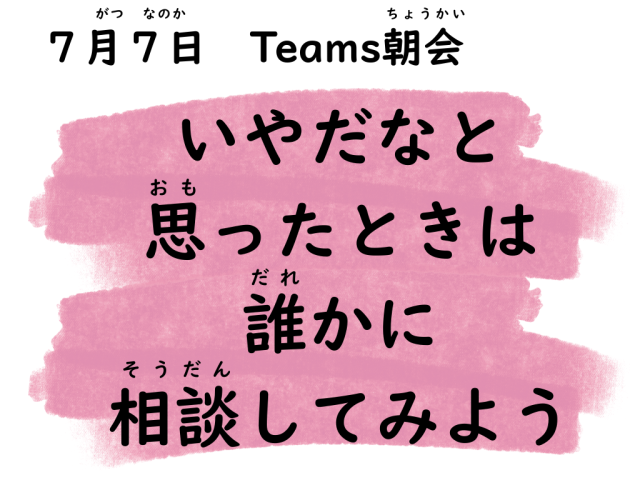加計塚小の中に、一人で悩んで苦しむ子がいないようにと願っています。