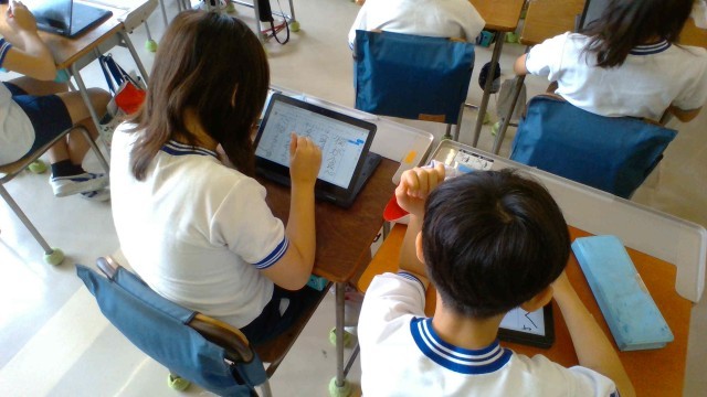 「えー!どっちでもいいけど」「面白そう!」子供たちはワクワクしながらタブレットに書き込みをしています。