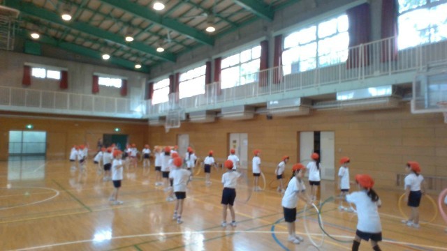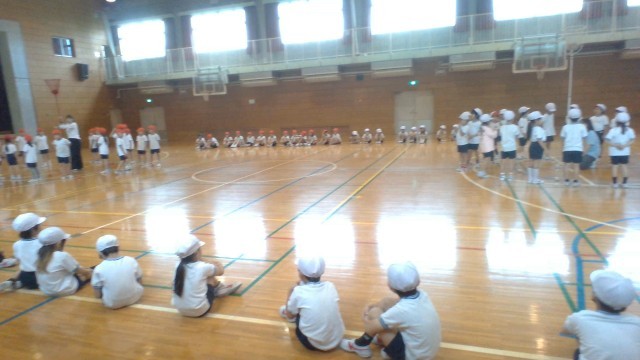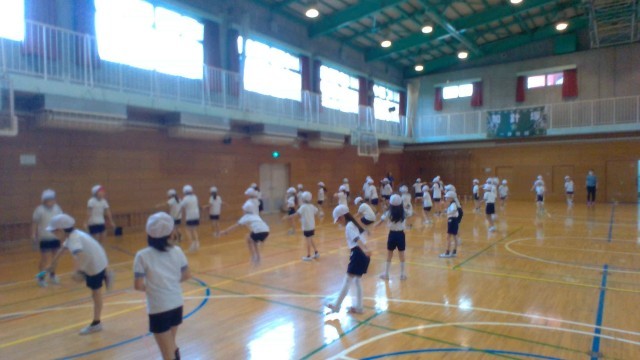 入退場の練習と道具をつかった練習を繰り返し行いました。1・2年生が全体がきれいに動いてみえるよう真剣に先生からのお話を聞いて取り組んでいました。普段から使うことがない道具を何度も練習して、自分で思い描いた表現ができるようチャレンジしています。1年生が入学してから初めて目にする「玉入れ」に「大きい~!」と声がでました。上手に投げ入れられるようみんなで楽しそうに取り組んでいます。