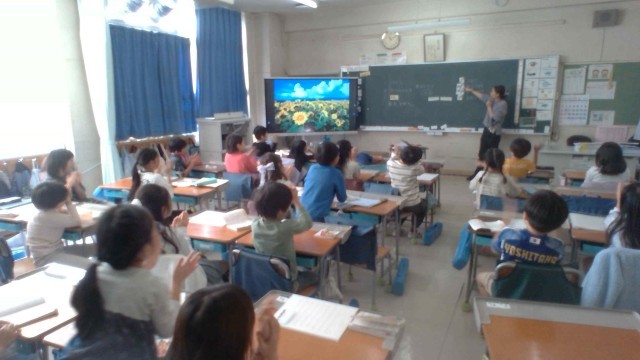 教室での音楽は久しぶりです。声出し、歌唱、リズムうちなどをしました。メゾピアノやフォルテなどの音楽記号も学習しました。先生の指差しにあわせて、手を叩く音を大きくしたり、小さくしたりしました。最後は「かぼちゃ」という曲に合わせて、リズムの重なりについて学習しました。次の楽器練習にむけての予習もしました。次の週の音楽が楽しみです。