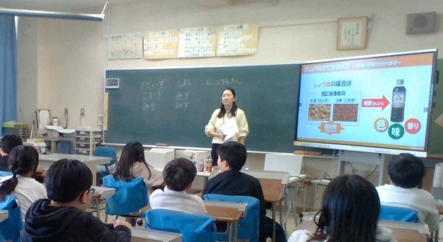 キッコーマンの方にお越しいただき、しょうゆについて学びました。