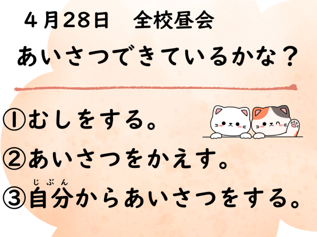 大人の世界では、挨拶は信用に関わります。挨拶ができると信用されます。挨拶ができないと「大丈夫かな」と心配されます。小学生のうちから、しっかりと挨拶ができる子になってもらえたら嬉しいです。