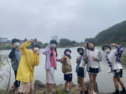 A組がカヌーをやってる間に、B組は湖の半周を散歩しました!これから、カヌーに乗ります。ドキドキです!