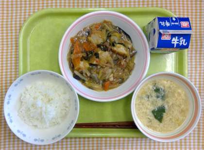 ご飯 厚揚げのオイスターソース炒め 中華コーンスープ