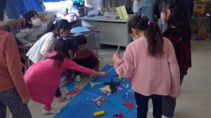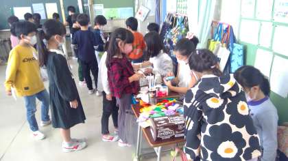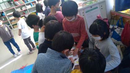 2年生のお店屋さんに招待してもらい遊びに行きました。どのお店も楽しい工夫がたくさんありました。1・2年の素敵な交流が見られました。