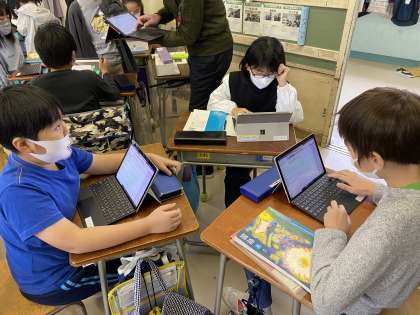 国語「よりよい学校生活のために」では、グループで話し合いをしました。OneNoteを使って課題に対するグループの考えをまとめました。