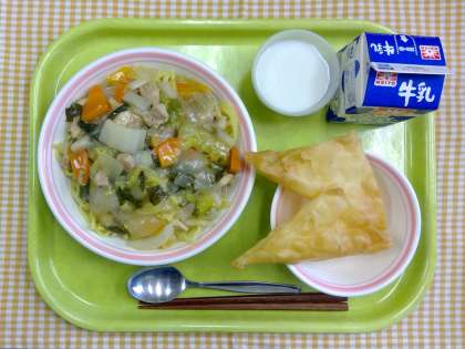 あんかけ焼きそば スティック春巻き 牛乳寒天