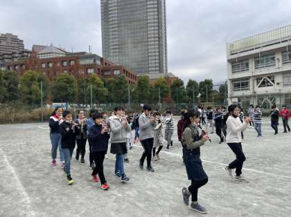 17日(金)の発表会に向けて校庭練習をしています。