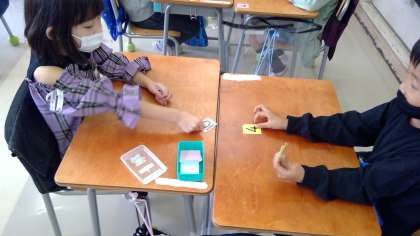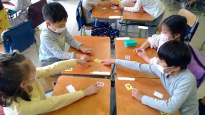 0から10までの勉強を生かして、友達といっしょに数の大小を考えます。仲よく協力して数字ゲームを行うことも、勉強になりました。
