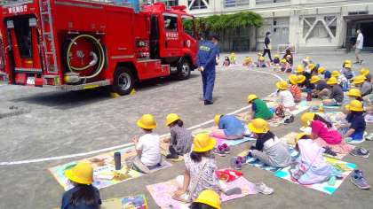 消防士さんたちから、火事の時の服装やホースの仕組みも教えてもらいました。