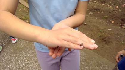 あたたかくなると動物はどのような様子なのだろうか。予想をしてからkakezuka farmに出発。「あ!テントウムシだ」「ダンゴムシかわいい」「よし!幼虫をさがすぞ」自然にふれて心がワクワクしています。探して、見つけて、観察して。あたたかくなると動物は卵を産んだり、活動を始めることがわかりました。