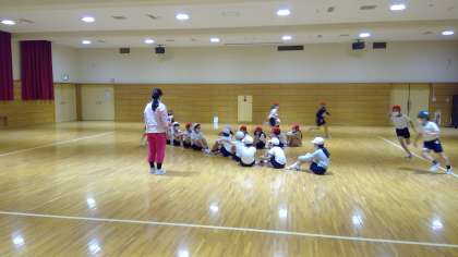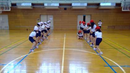 加計塚小学校は、体育館が2つありとても便利です。雨が降って校庭が使えなくても小体育館があります。今日は、1組は大体育館で、2組は小体育館で、体ほぐしの運動を行いました。家ではできない楽しい集団活動に、笑顔がはじけます。