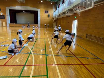 今日は、2時間目に大体育館で体力テストを実施しました。長座体前屈、上体おこし、立ち幅跳び、反復横跳びの4種目です。記録をのばそうと真剣な顔つきが印象的でした。ペアで見合い、数を数えてあげたり、記録してあげたり、協力して進めました。