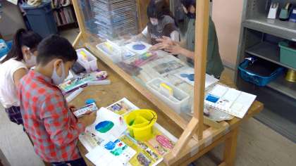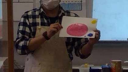 10分間できれいな〇を描き、絵の具で塗りました。コツは中をしっかり塗ったあと、周りをゆっくり塗ることです。