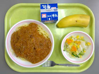 給食の前には「今日の給食はミートソースだ〜」と嬉しそうな声が飛び交っていました!