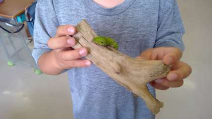 「先生!こんな幼虫がいました!」 「え!!こんな大きいの初めて見た!すごい!」